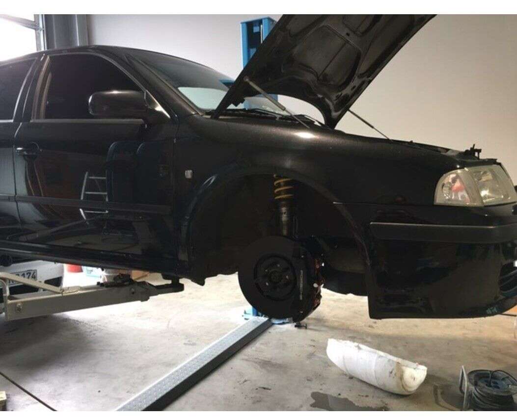 With our big brake kit for the Golf 4 Audi A3 serie and many other cars, you can convert your front axle to a 6-piston brake system and achieve ideal performance.