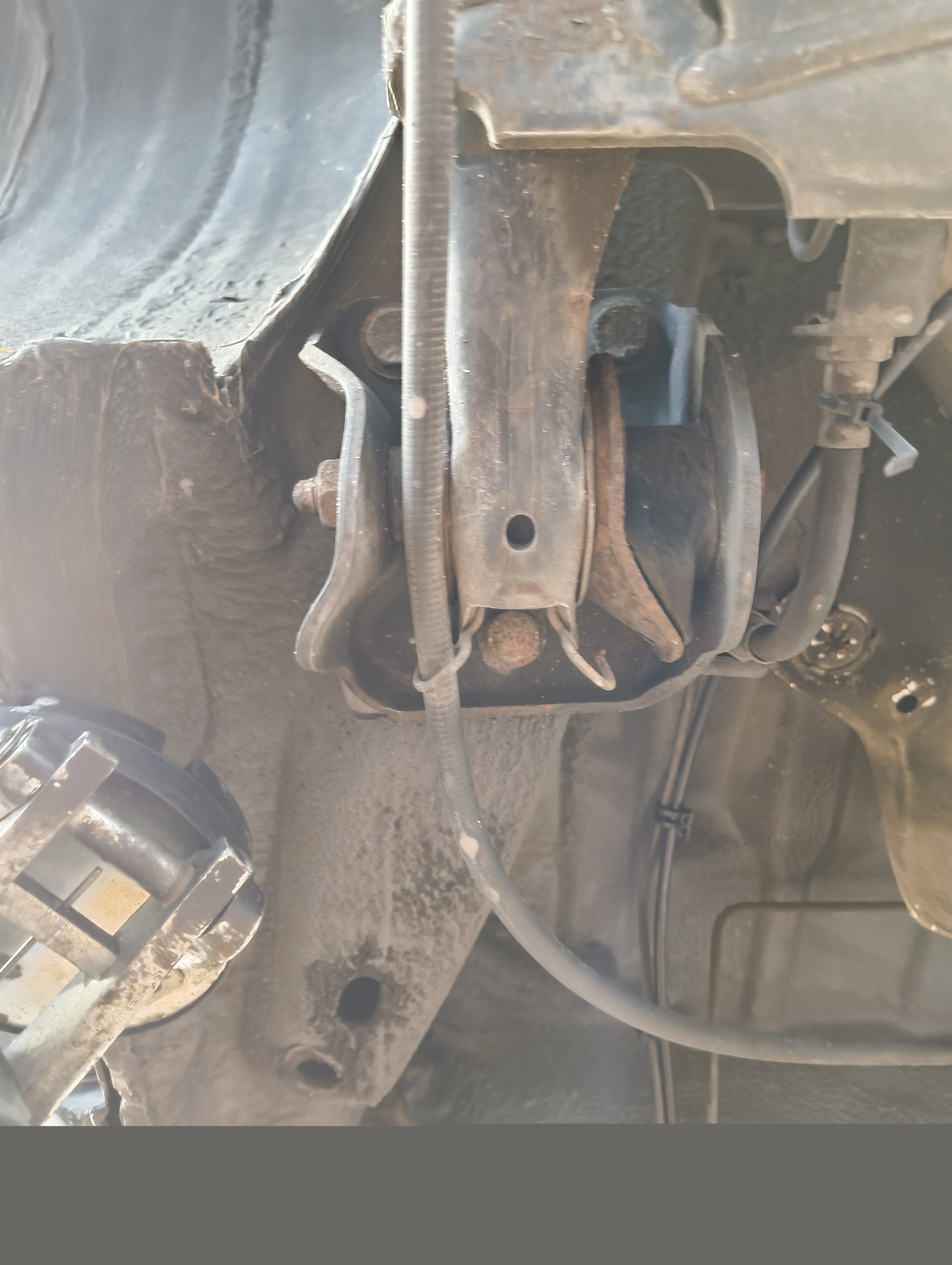 Raise the rear of the vehicle and remove the wheels to take unnecessary weight off the axle. Secure the axle with a gearbox jack or car jack so that there is no tension on the brake lines.