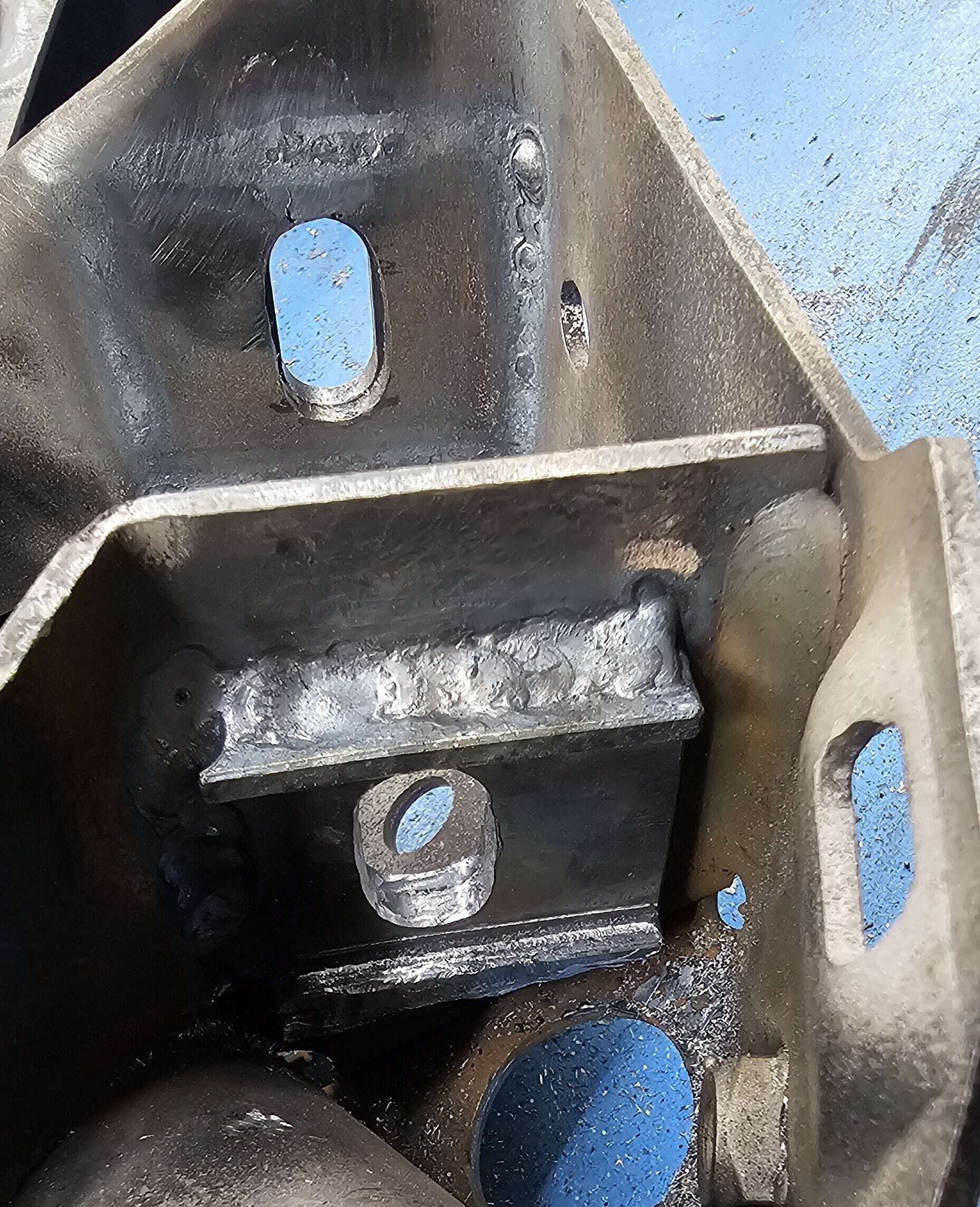 Step 8: Welding the camber adjustment plates to the inner mounting points of the control arm