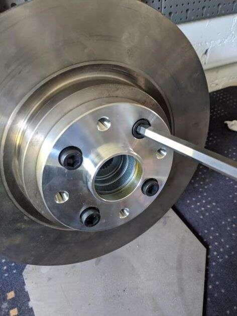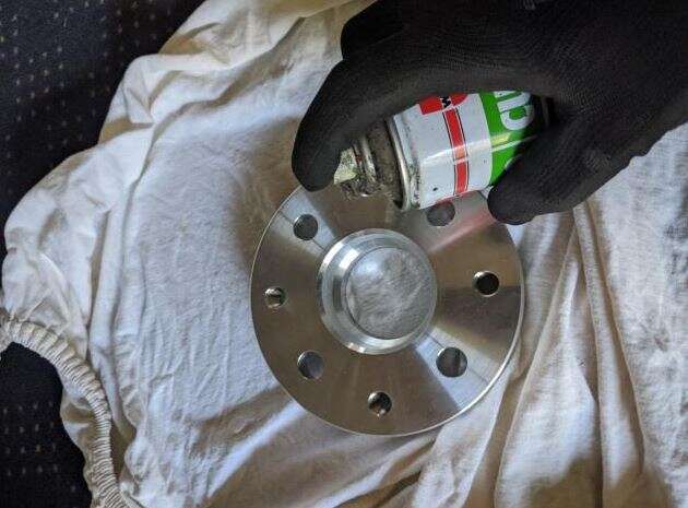 Now it is recommended to grease the bolt circle adapter. We use a copper paste here. This is suitable for high temperatures and is therefore ideal for removing the plates cleanly, even after a long drive.