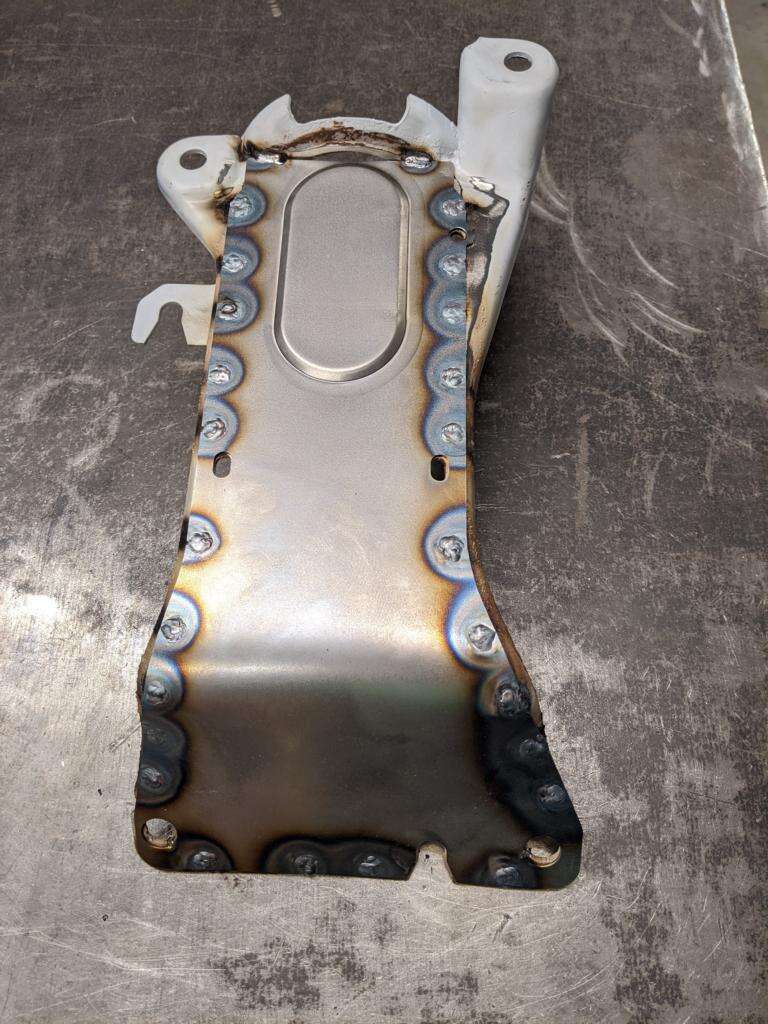 If everything fits and the repair plate for the Audi RS4 S4 RS2 shock absorber mount fits cleanly, you must fill the holes and weld through them.