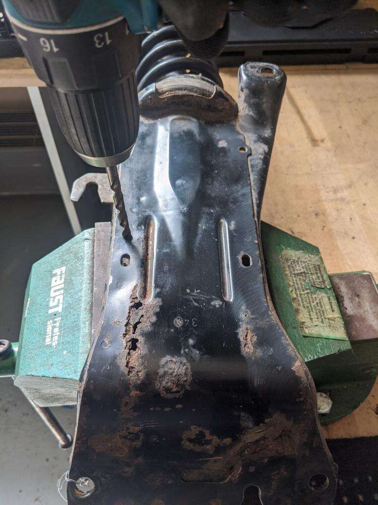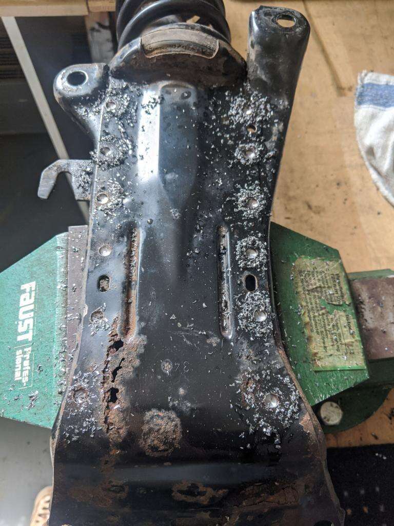 First, the Audi RS4 S4 S2 shock absorber mount must be dismantled so that it can then be clamped in a vice so that it sits neatly and can no longer move.