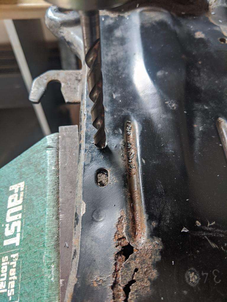 Once the cut is made, you can lift the sheet with a sturdy screwdriver at the first drilled welding point, then do this piece by piece.