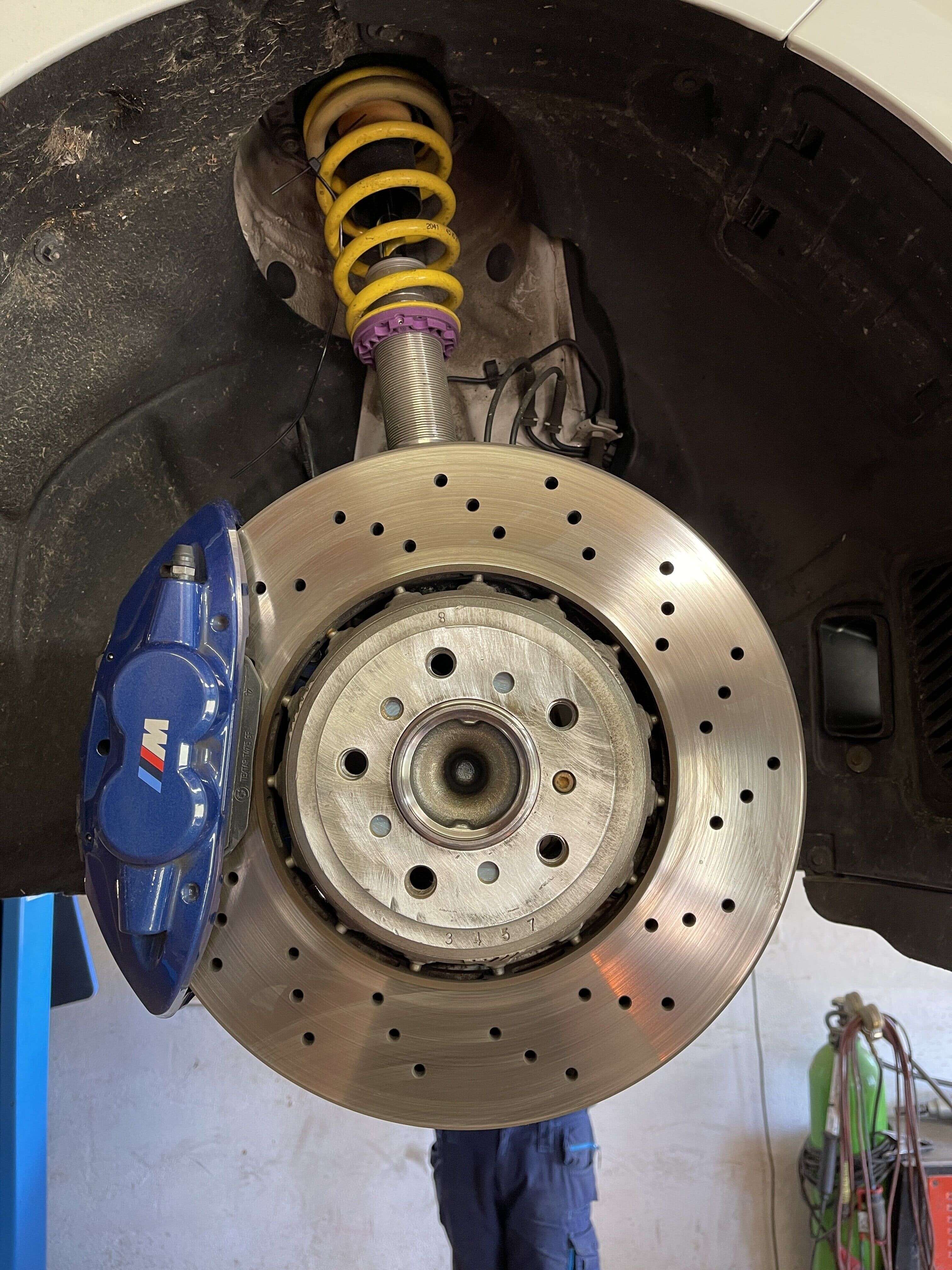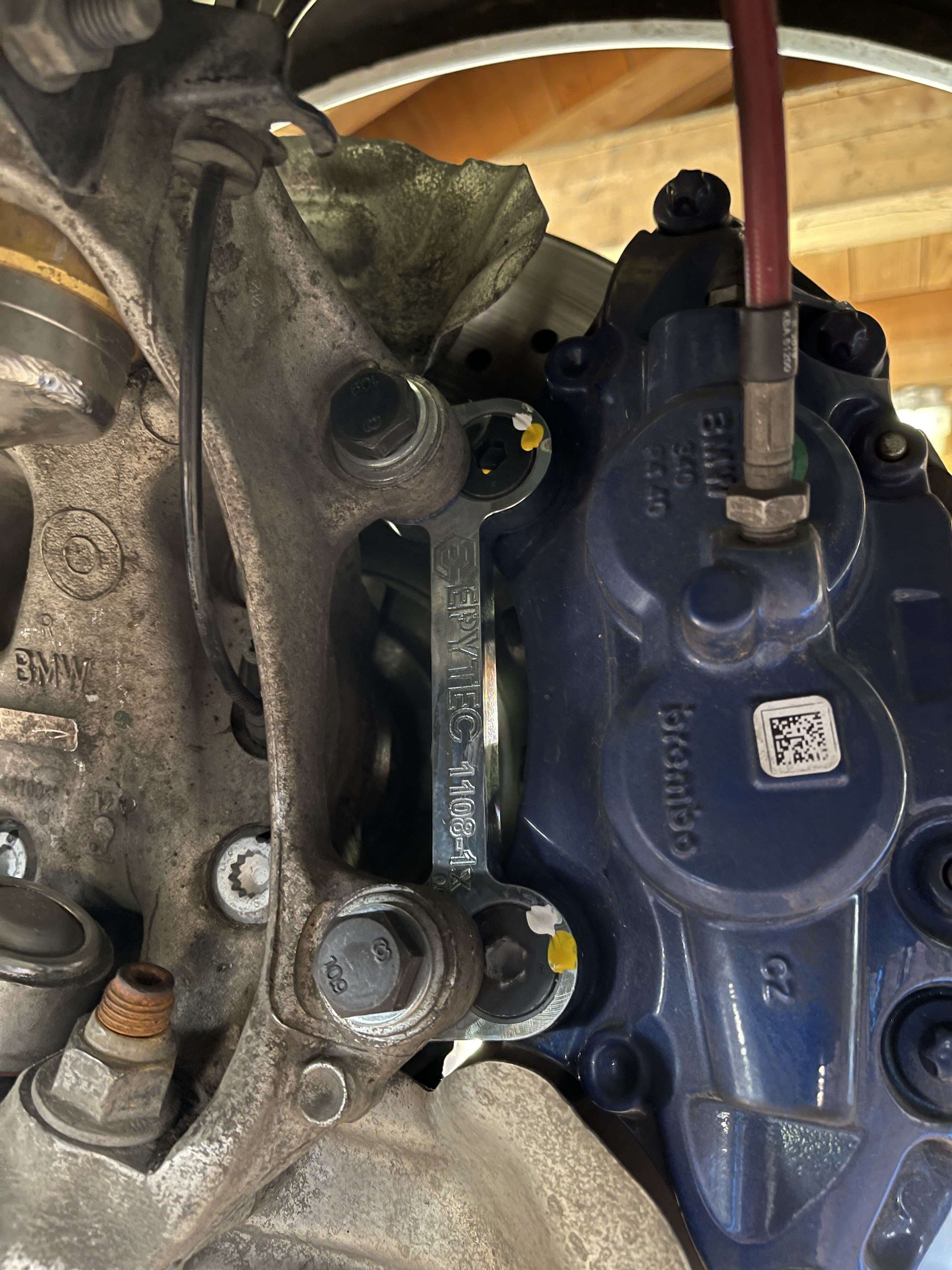 Sehr viel wert auf Detail, dies merkt man direkt beim öffnen des Paketes. Der umbau der grauen unlackierten Bremsanlage ging sehr einfach von der Hand, kein kürzen irgendwelcher Schrauben war vonnöten. Intuitiv kann man diesen umbau in zwei Stunden erledigen, einzig beim erneuten anbringen des Bremsverschleissanzeigers, wird man durch das versetzten des Bremssattels nicht mehr die original Fassung für das Kabel nutzen können. Hier half mir ein Kabelbinder. Durch das versetzen konnte ich die M3 f80 380 mm Bremsscheibe fahren, was nicht nur gut aussieht sondern dementsprechend gut besser bremst.
