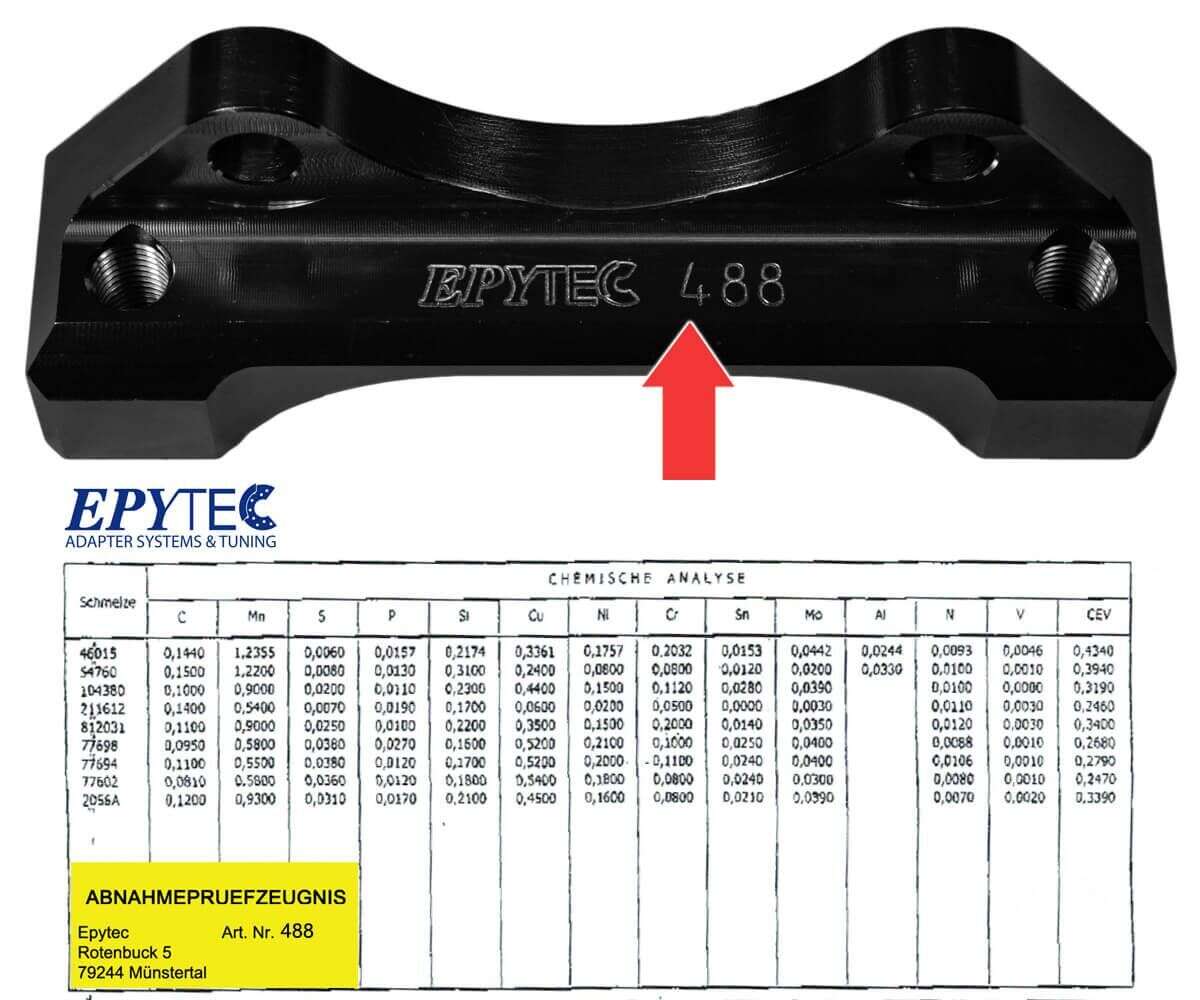 - Our EPYTEC brake calliper adapters do not require the return of their serial parts, no rewelding - milling or reaming.
