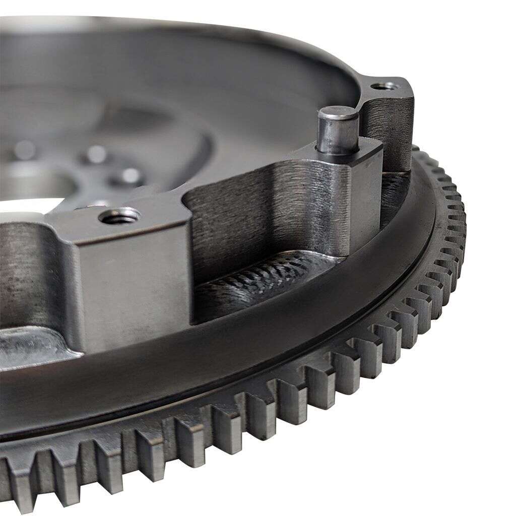 The flywheel has no TDC marking, only the pin on the back, just like the original flywheel. Tip: To adopt the TDC marking, the original flywheel must be turned to the TDC point before disassembly and the new flywheel must be marked in exactly this position.