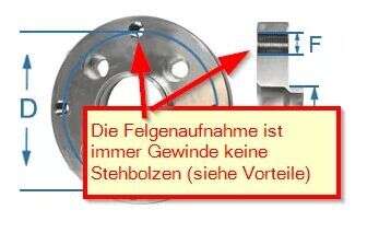 We manufacture all adapter plates with threads for the rims, so that the rims can always be fastened with wheel bolts and not with studs, and no longer like on your vehicle with wheel nuts.This has the following advantages for you :
