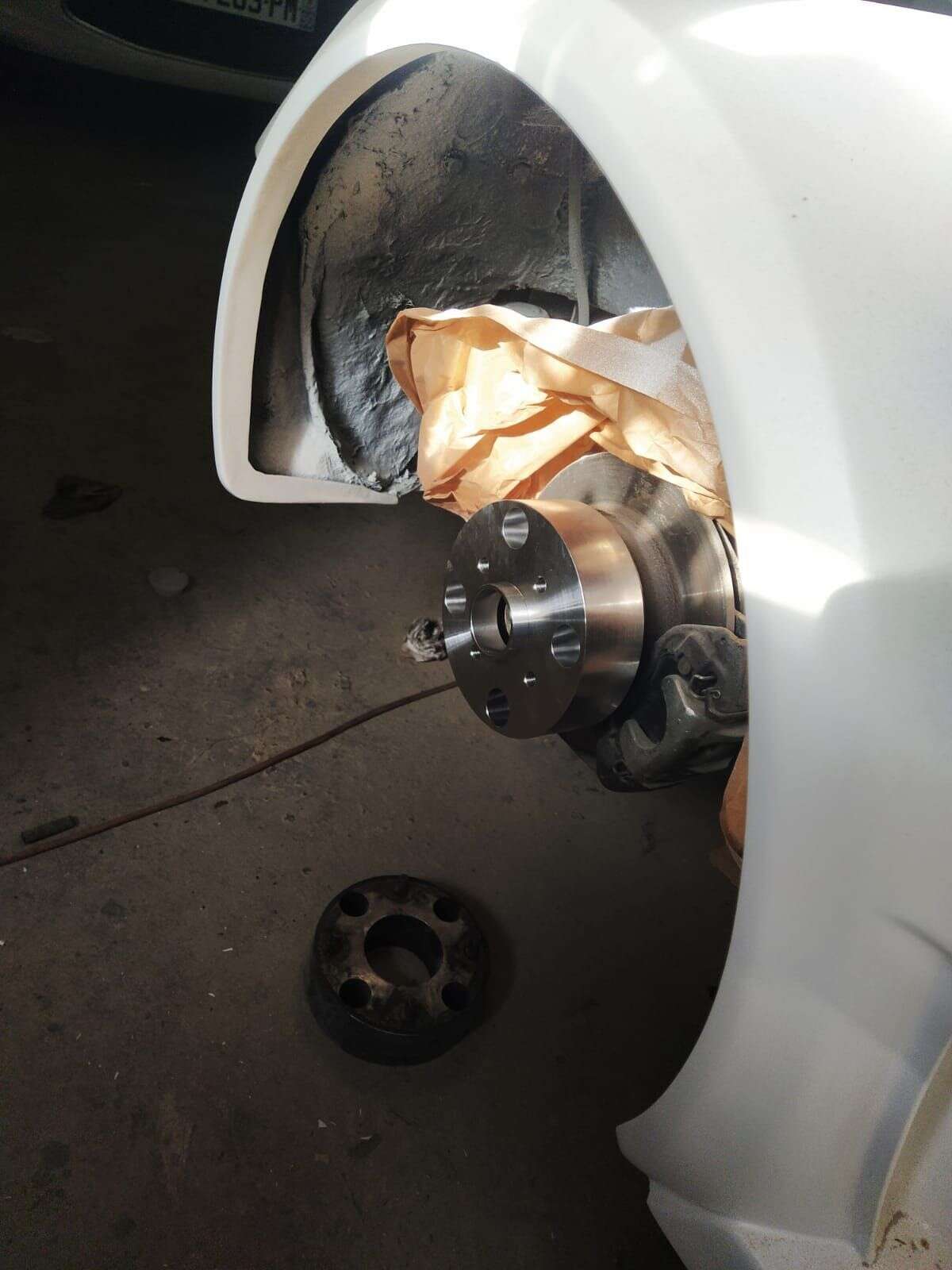 Example of a bolt pattern adapter on an off-road buggy, click here.
