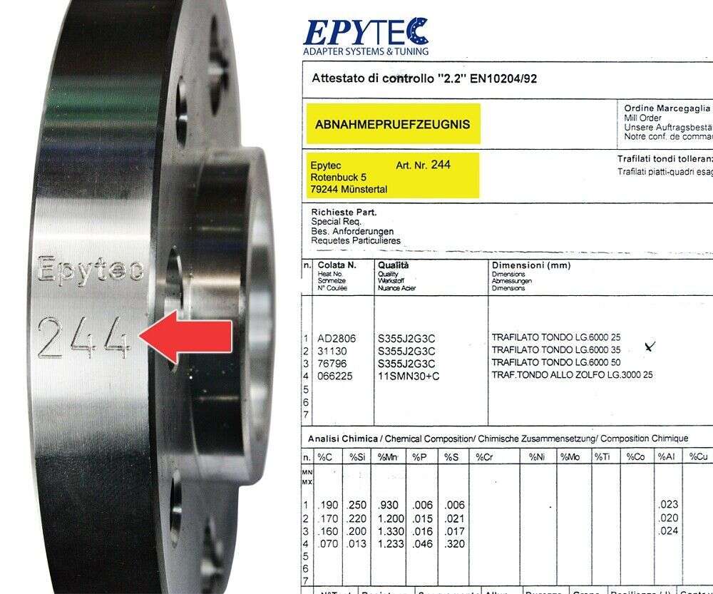 - How does the TÜV registration for Epytec bolt pattern adapters work?