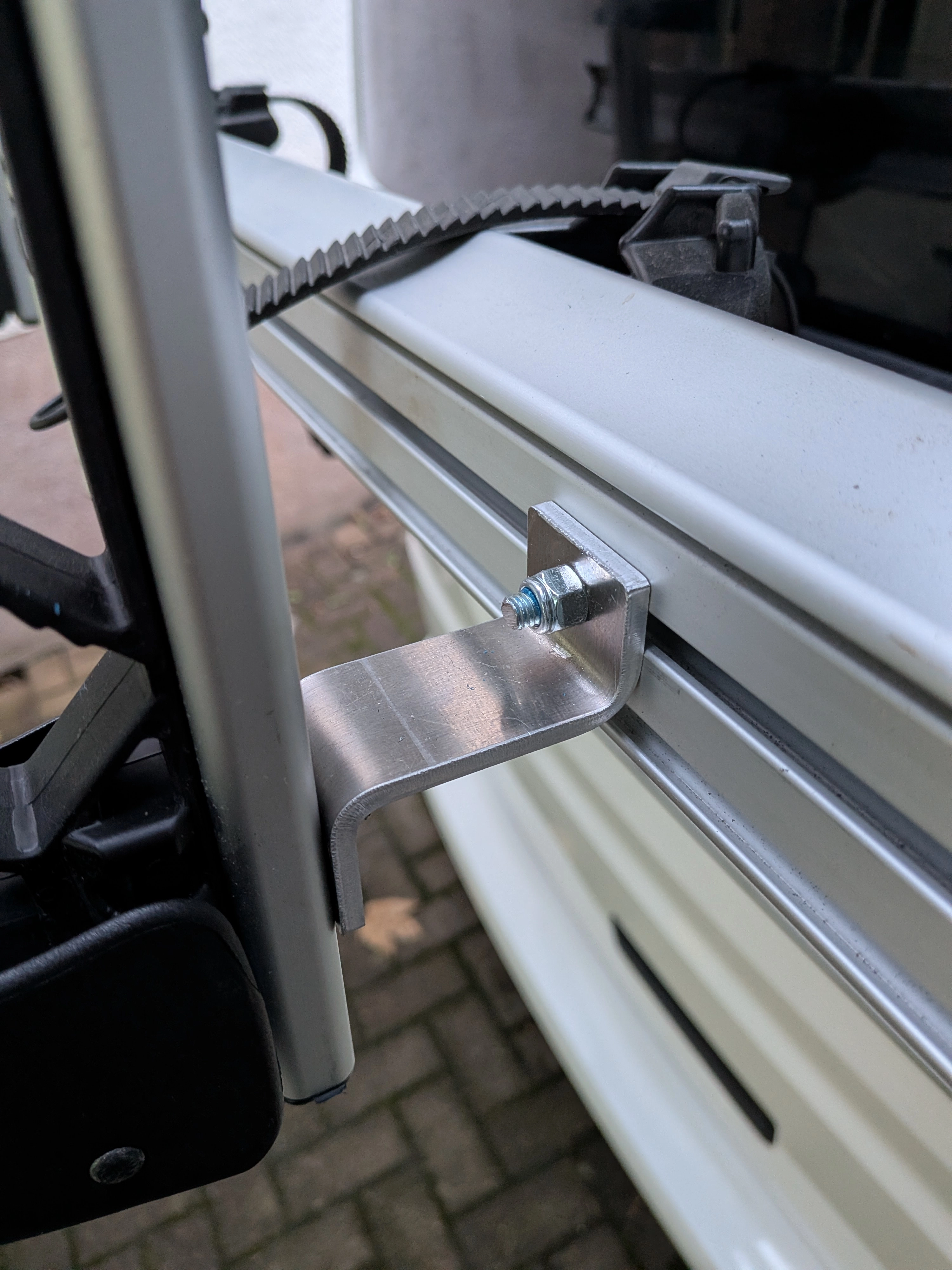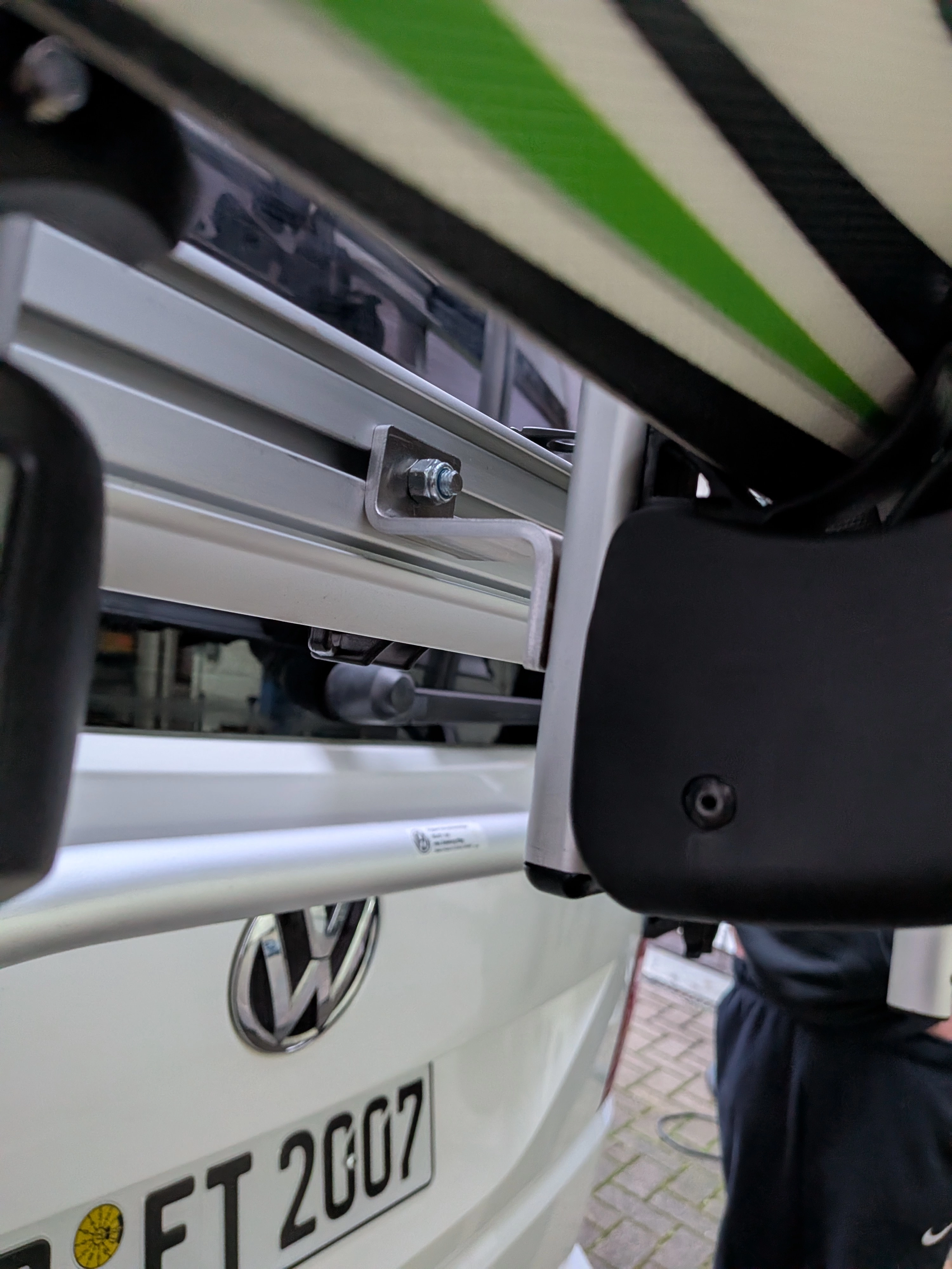 Thanks to exterior mounting, snow, moisture, and dirt are reliably kept out of the vehicle interior. The adapters are inserted directly into the original guide rails of the VW bike rack using the supplied screw set – without drilling, without modifications, and fully reversible at any time. A clean plug-and-play solution for winter sports enthusiasts who want to use their VW Bus flexibly.