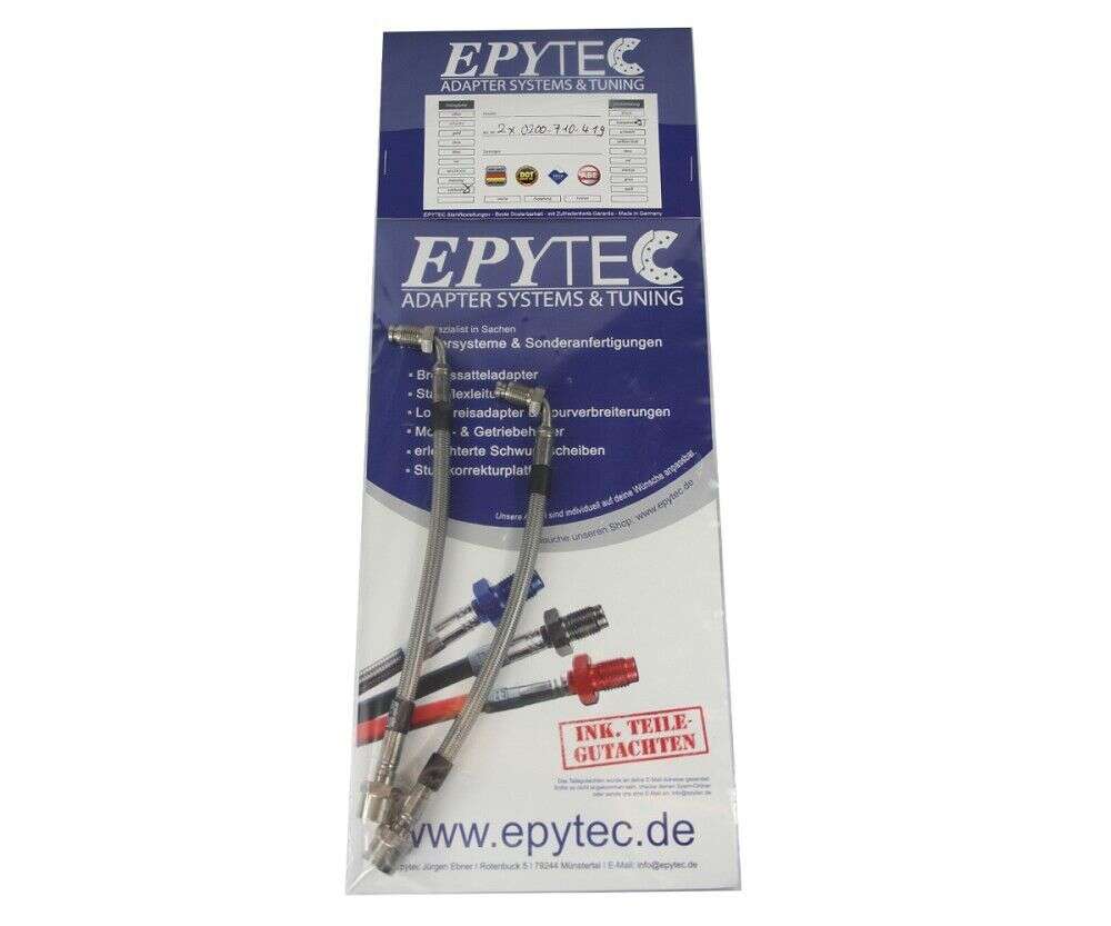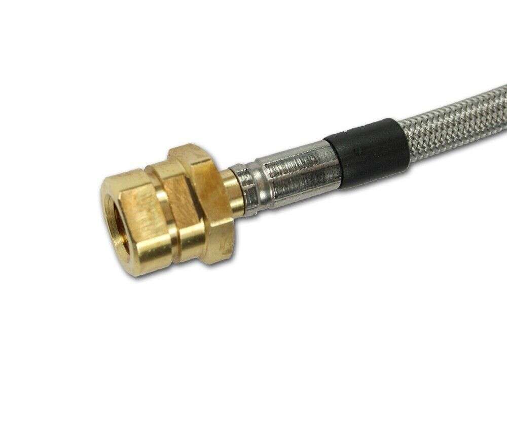 Steel braided brake line / steel flexible brake hoses with corresponding connexion , including material certificate, for conversion to larger brake system, connexion M12x1,0, suitable for e.g. Golf MK4 R32 or Audi S3 8L.