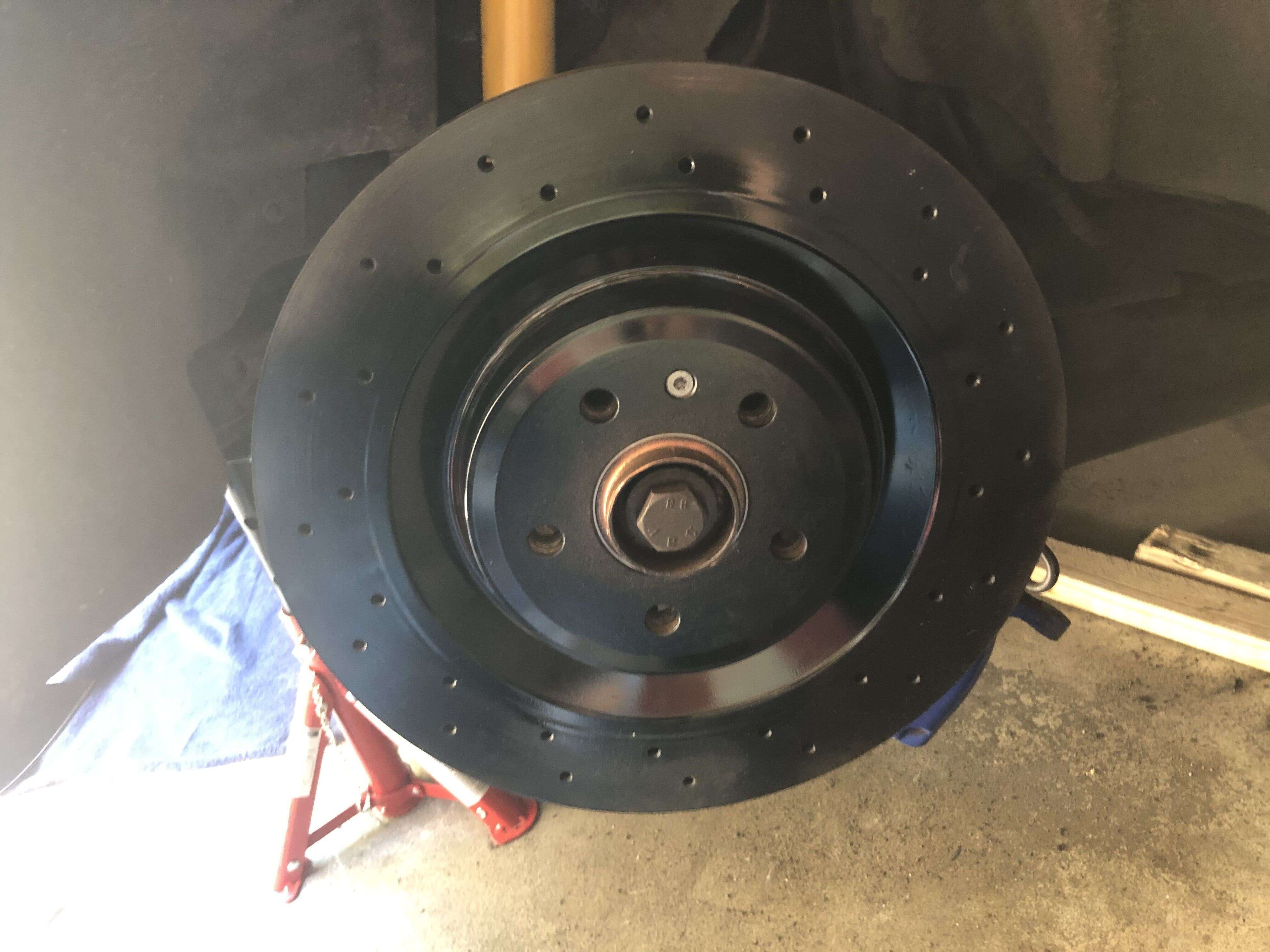 - Brake caliper from the 350mm brake does not fit. ( Brake pad would stick out over the disc )