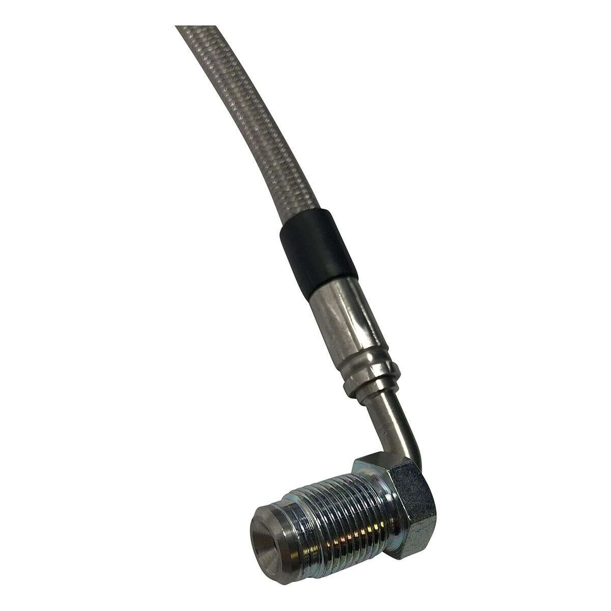 Die Gewinde an der Stahlflexleitung (Länge der Leitung: 108cm) sind M12x1 90° gebogen und M10x1 Innengewinde.