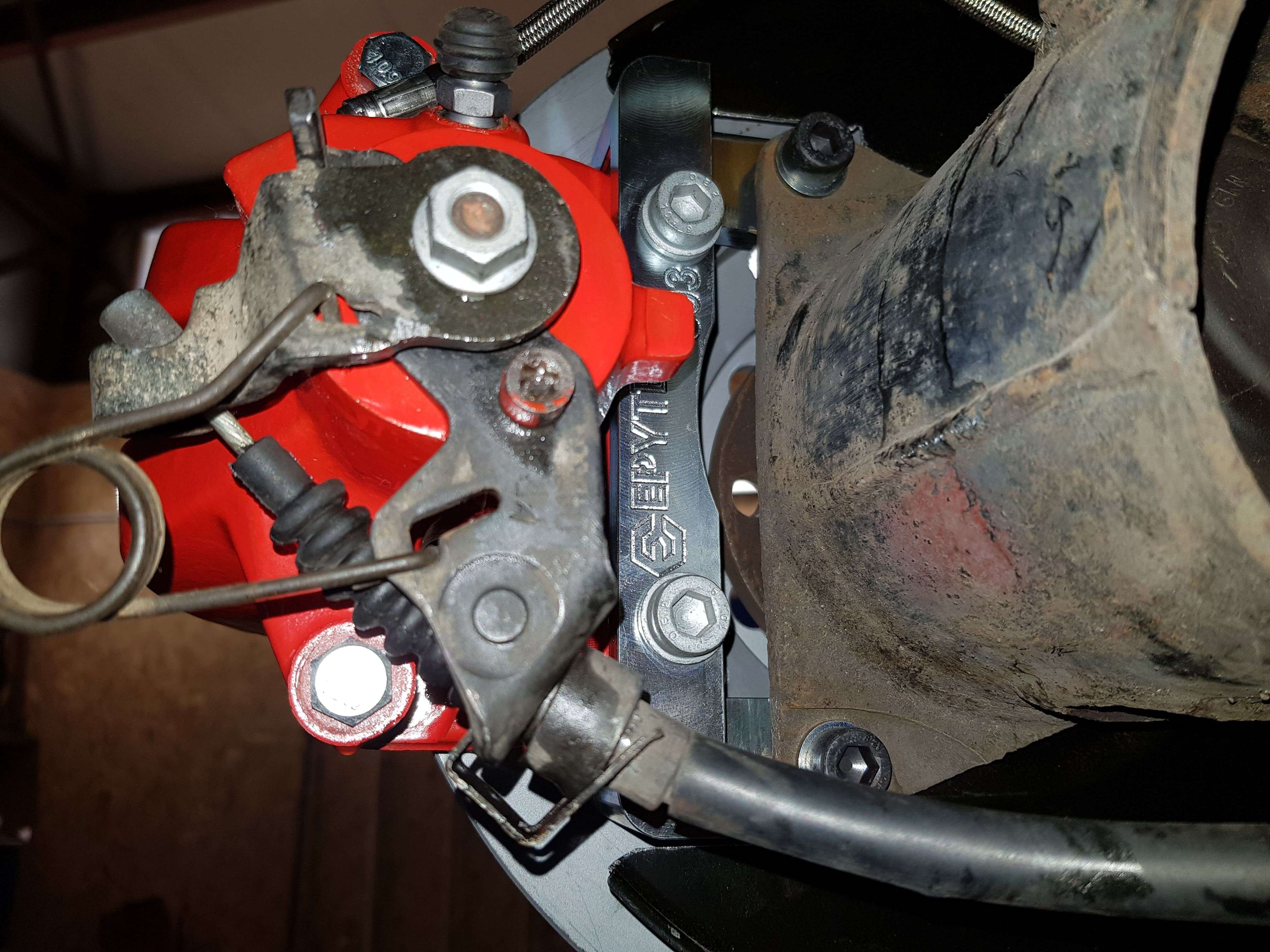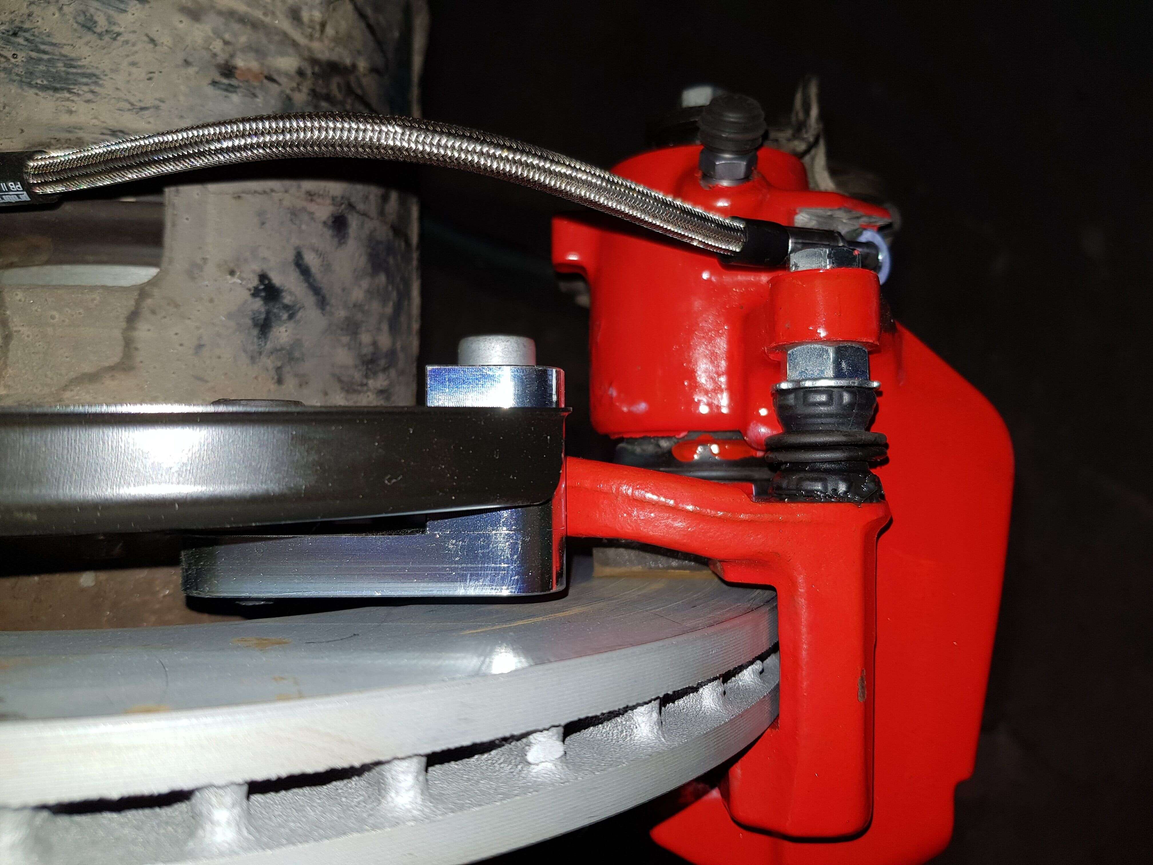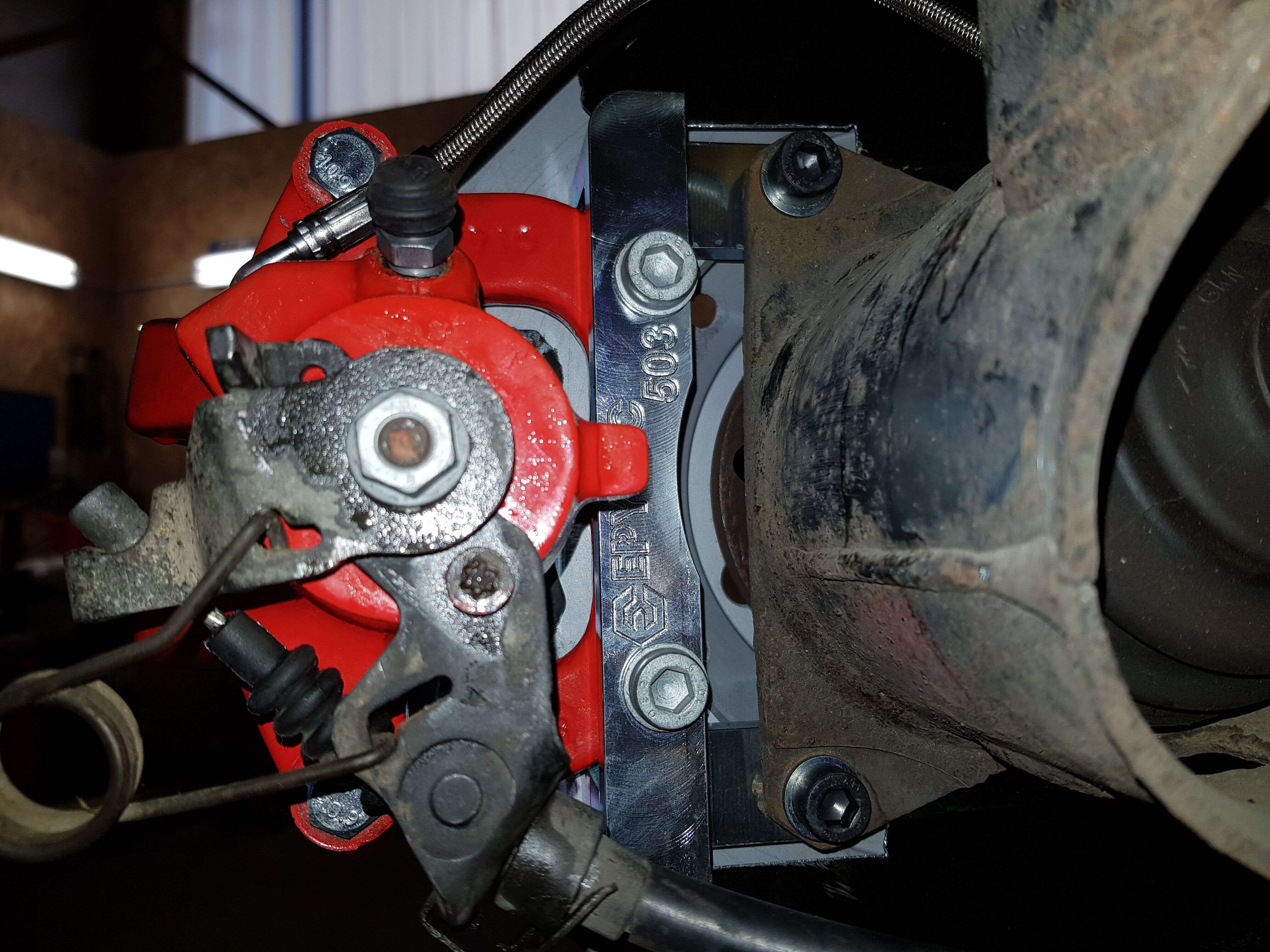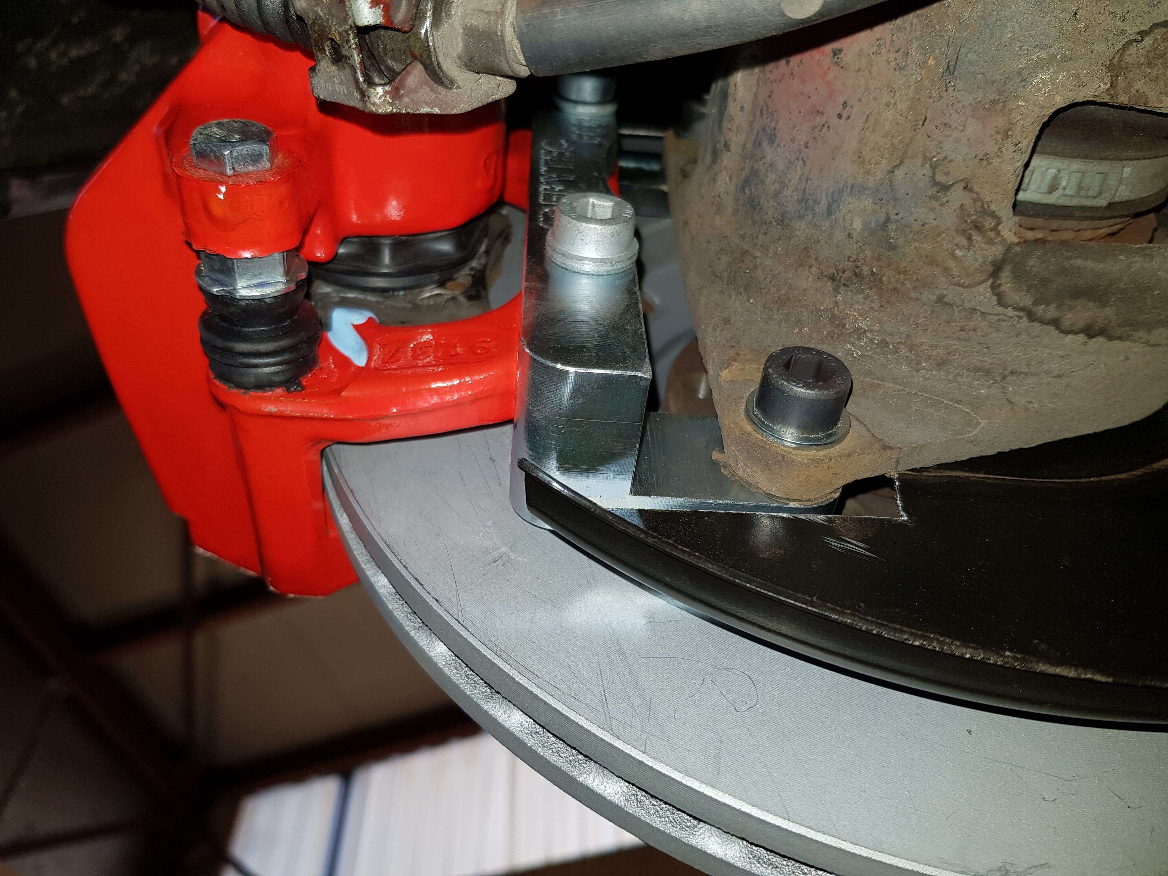 Bremssattel Adapter um die hinteren Bremssättel vom Golf 4 V6/R32 Audi S3 8L Bj.99 in Verbindung mit den VW Phaeton 310x22mm Bremsscheiben an der Hinterachse des Golf 3 Corrado Syncro zu fahren.