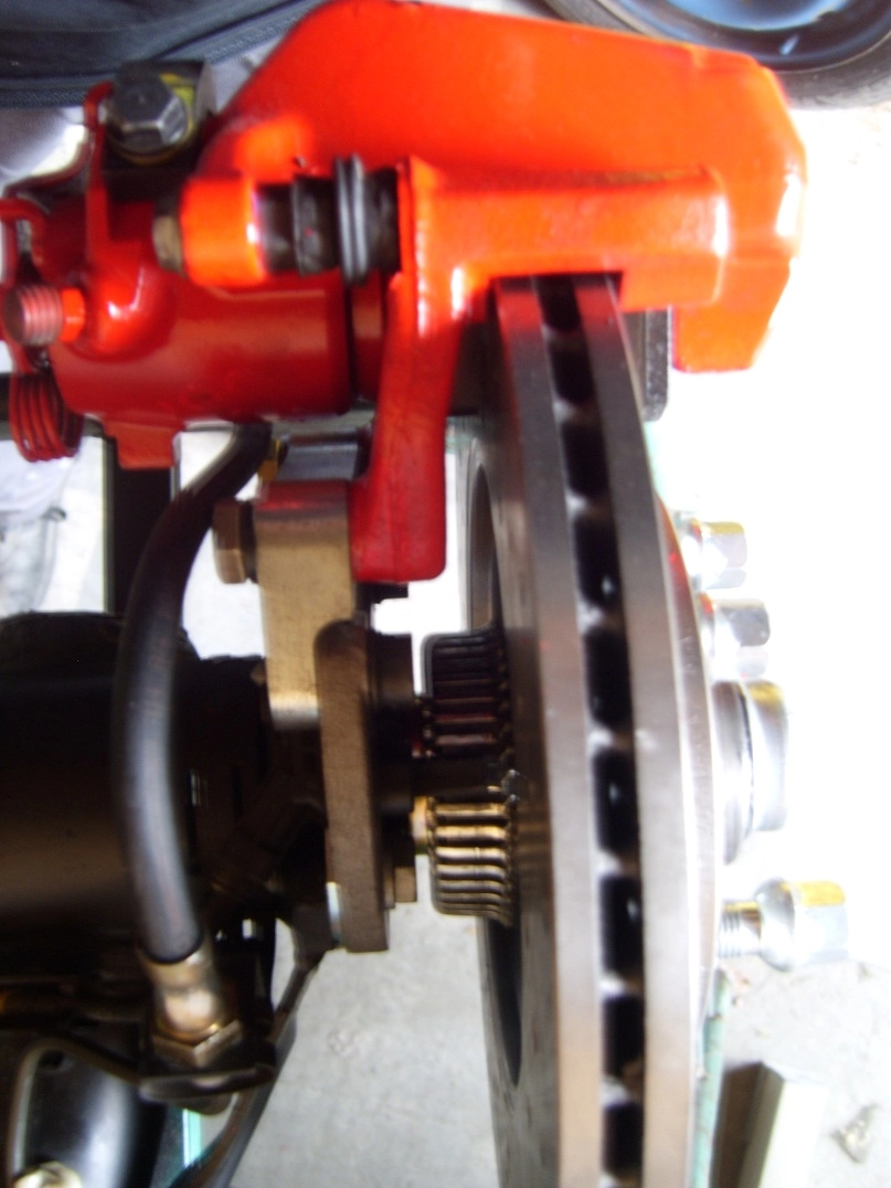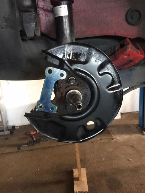 Bremssattel Adapter mit speziellen Radnaben um die hinteren Bremssättel vom Golf 4 V6/R32 Audi S3 8L Bj.99 in Verbindung mit den vorderen 280mm VR6 Bremsscheiben an der Hinterachse zu fahren.