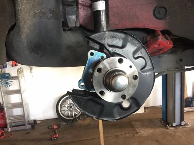 Mit Hilfe unserer Radnabe (in 4und 5Loch je nach Modell erhältlich) werden die 280mm Bremsscheiben zentriert und angeschraubt.Die Spur wird um ca 6-8mm pro Seite breiter. Die Radnaben sind an der Lagerinnenseite baugleich wie die Originale. Daher können die Originalradlager weiter verwendet werden.
