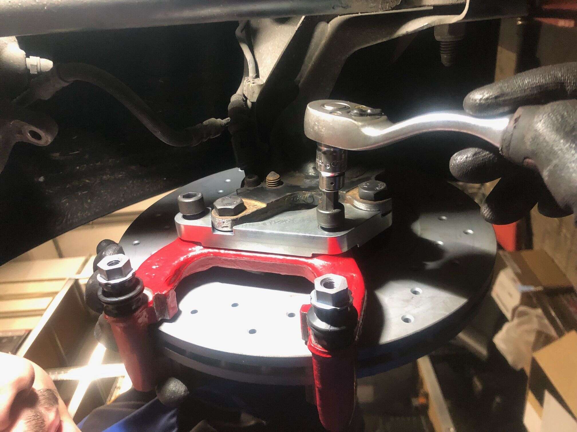 Bremssatteladapter um die Hinterachse der 4er Golf Baureihe auf die 280mm Golf 4 Bremsscheibe in Verbindung mit den R32 / S3 Bremssättel zu verbauen.