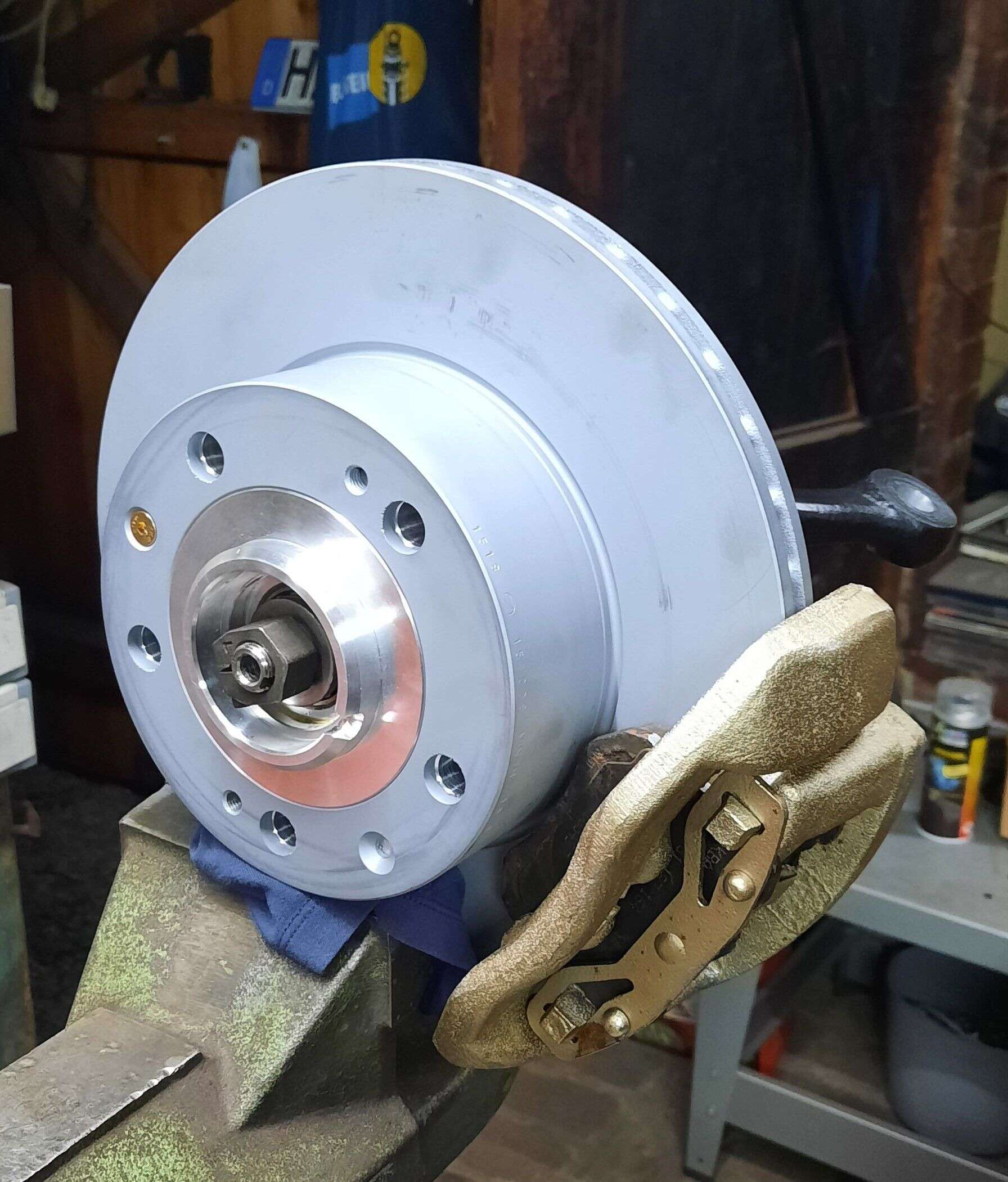 Die in der Anleitung angegebenen Radlager (Bj 68) passten nicht zu meinen Achszapfen. Die Löcher für die Radbolzen ,in der Radnabe, sind sehr klein. Die Bolzen ließen sich nur mit extremer Kraft einpressen. ( über 5 Tonnen) Die Materialstärke der Nabe ist wesentlich höher als bei der originalen, daher sind die Bolzen eigentlich zu kurz jetzt. Der Bremssattel musste an der anschraubstelle mit 1.1mm unterlegt werden, damit der Sattel mittig zur Bremsscheibe sitzt. Mfg B.Krieft